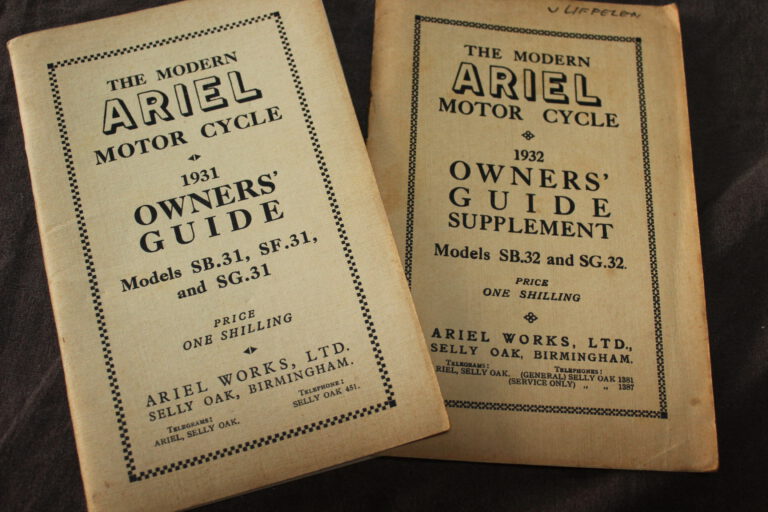 Ariel 1931 motorcycle owner’s guide SB31 SF31 SG31 Slooper + supplement 1932