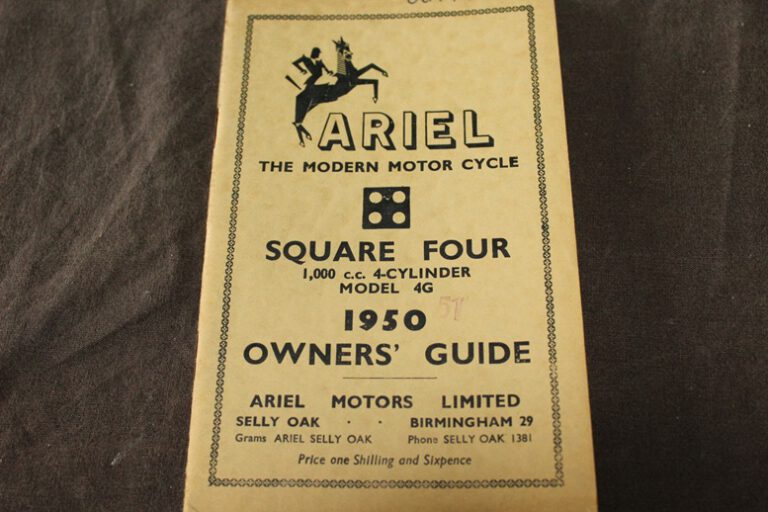 Ariel Square Four model 4G 1950/51 motorcycle owner’s guide 1000cc 4 cylinder