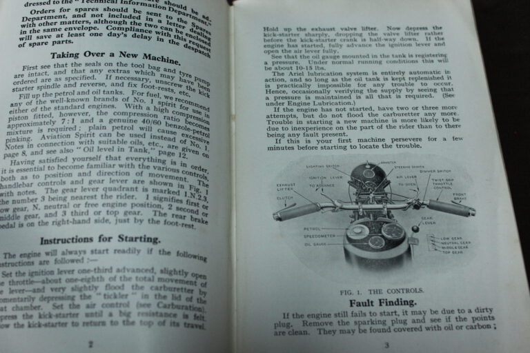 Ariel 1931 models LB31 LF31 250cc motorcycle owner’s guide