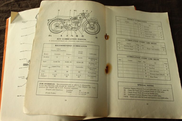 Velocette 350cc MAC 1955 motorcycle owner’s handbook
