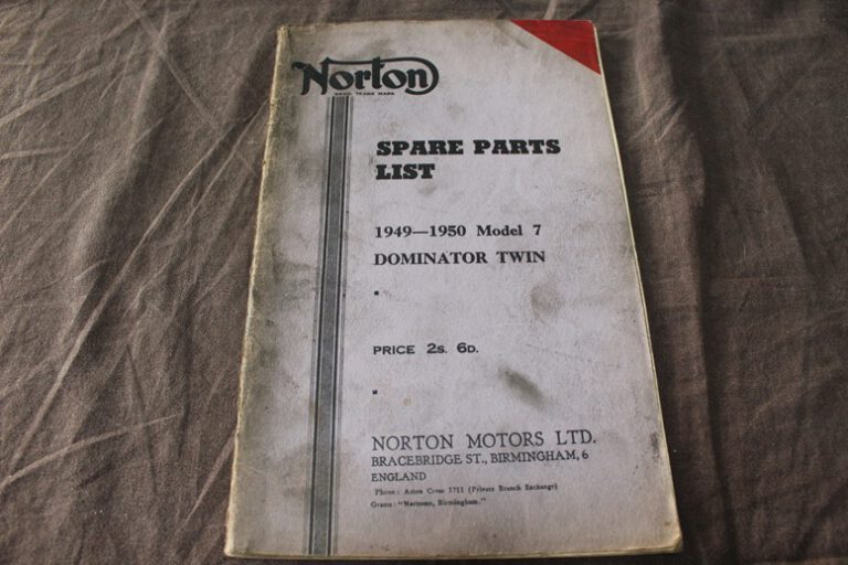 Norton 1949 -1950 model 7 Dominator twin motorcycle parts list
