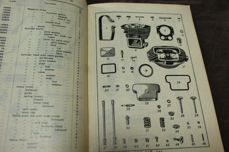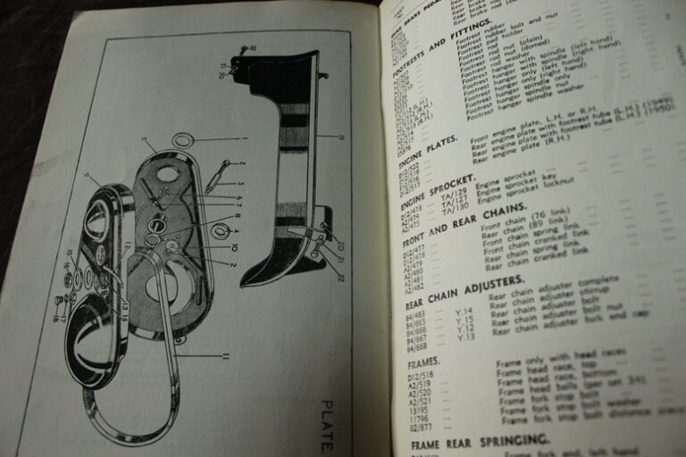 Panther M100 1951 motorcycle parts list