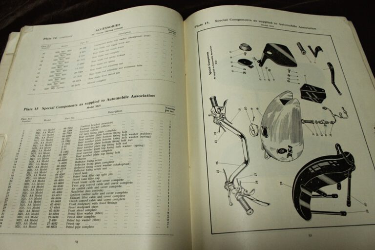 BSA M models 500cc & 600cc singles 1949 – 1953 motorcycle parts list