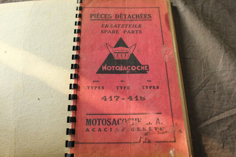 Motosacoche type 417 418 1931 motorcycle parts list SV OHC pieces detachees motorrad ersatzteilliste