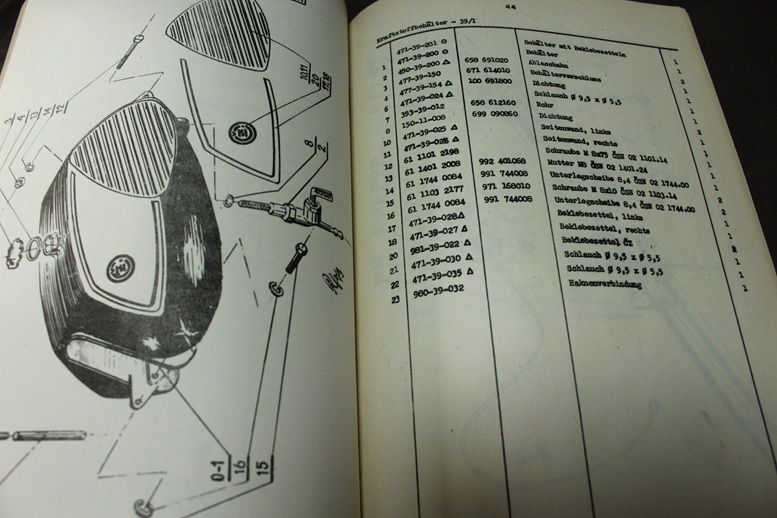 german parts list in A4 format